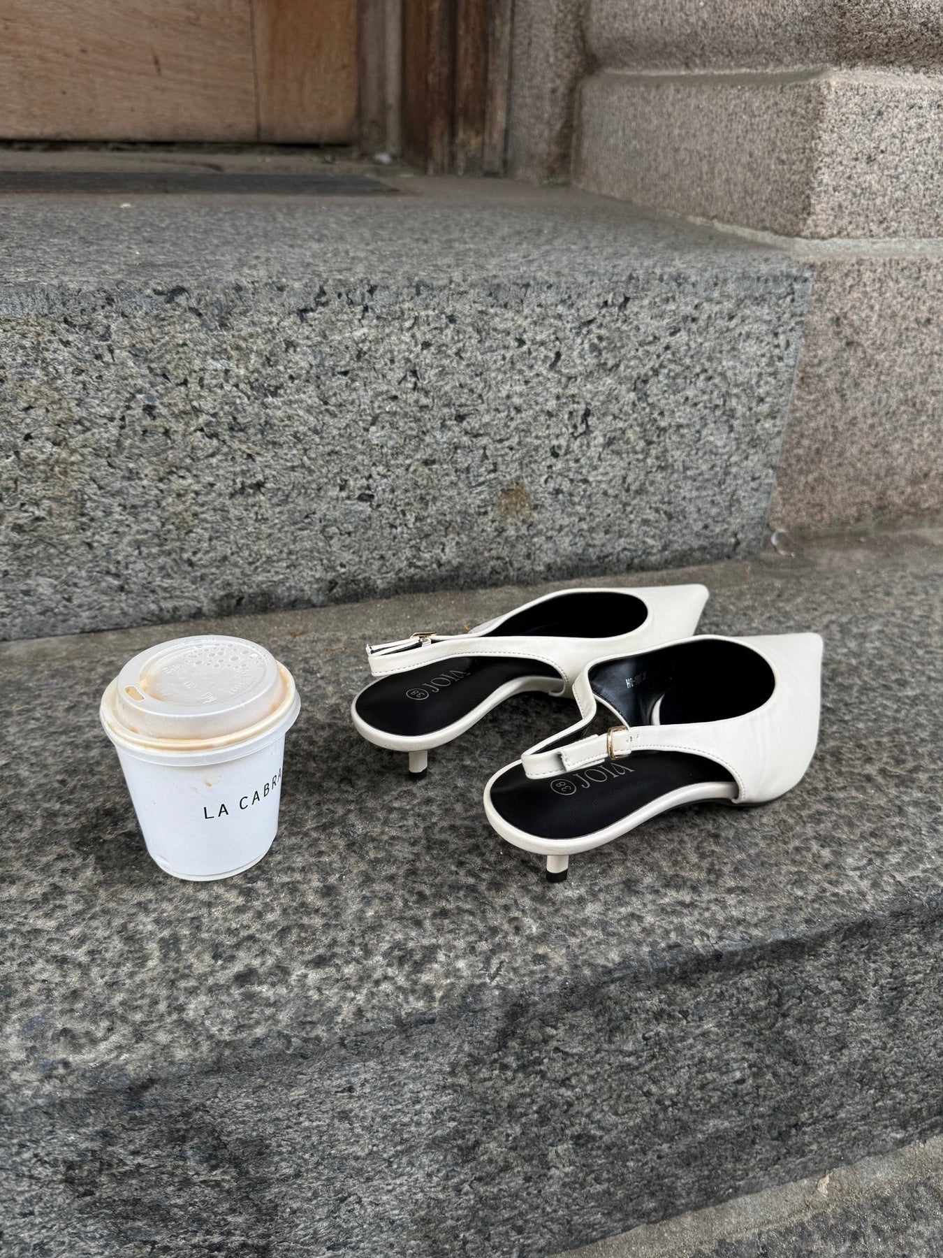 Thyra Slingback on elegantti avokas, jossa on terävä kärki ja matala piikkikorko. Kengän pinta on yksivärinen, kermanvärinen ja hieman kiiltävä, mikä luo puhtaan ja minimalistisen ilmeen.